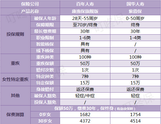 (2)在費率上,保障也與7種女性特異性嚴重疾病相同,康惠保旗艦版費率比紫霞保更有利。
