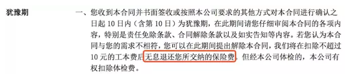 簡單地說,在購買保險后的10天內(nèi),如果您認為您購買錯了、后悔了、與代理商描述的不一樣;你可以在猶豫期內(nèi)隨時申請退保,保險費用完全撤退!如果您在線下購買,可能會扣除10元的費用。如果猶豫期結束,即使被保險人違約,損失也會相對較大。
