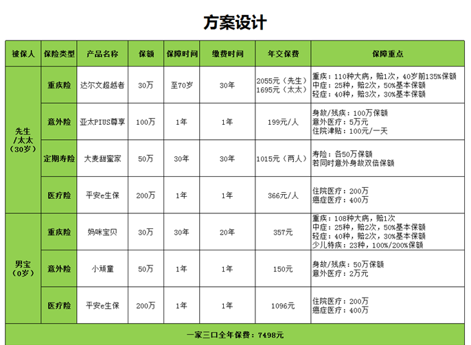 一家三口該怎么選保險?