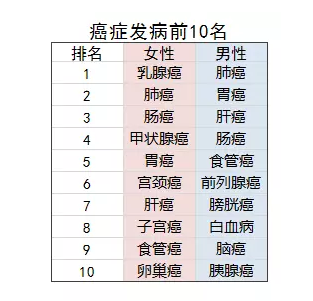 根據2018年2月,國家癌癥中心發(fā)布的中國最新癌癥數據表明,在中國每天都有1萬多人確診新發(fā)癌癥。而癌癥發(fā)病前10如下: