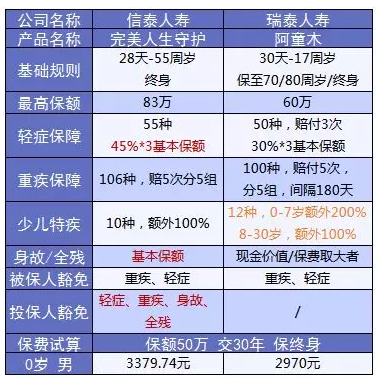 完美人生守護(hù)如果是給未成年人投保的話,特疾是必選的,那么在價(jià)格上會(huì)不會(huì)加價(jià)很多呢?這里跟瑞泰阿童木做個(gè)小對(duì)比: