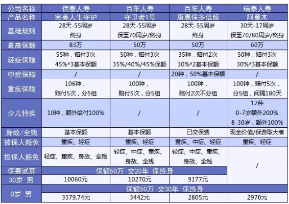 完美人生守護(hù)的少兒特疾涵蓋全不全面呢?多保魚(yú)拿了幾款熱銷的少兒重疾險(xiǎn)來(lái)與之比較一下: