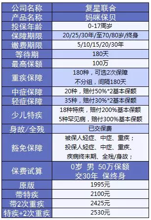 而在近期,復星聯(lián)合健康率先打破平靜,推出了一款名為“媽咪保貝”的少兒重疾險。