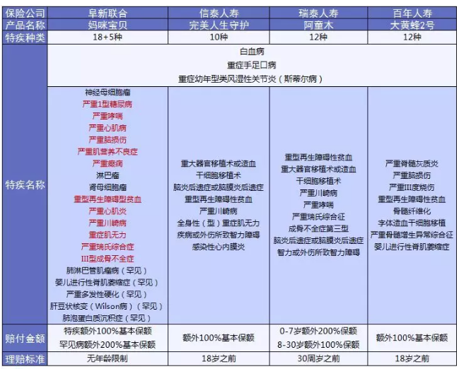 涵蓋少兒特疾的產(chǎn)品其實很多,保魚君挑選了幾款比較有特點的產(chǎn)品來與媽咪保貝做個比較: