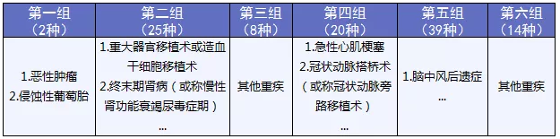 重疾一共可以賠付6次,分6組。
