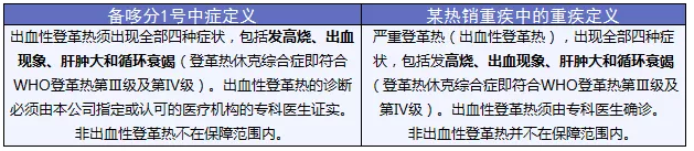 出血性登革熱通常被劃分為重疾,但是在備哆分1號里被降為了中癥,賠付金額減少,理賠要求卻沒有降低。