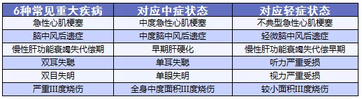 重疾、輕癥對應增加的中癥