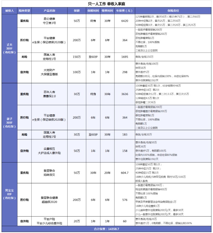 總的來說,小王家的方案思路就是在有限預(yù)算內(nèi),盡可能買到更高的保障。