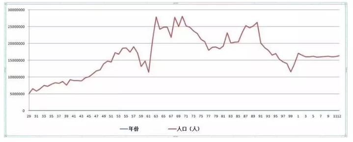 我們從出生人口來看。在60-70歲,80-90的嬰兒潮,出生人口呈上升趨勢,為經濟發(fā)展提供了足夠的人口紅利,以及70-80年和90后出生人口數(shù)量急劇下降。看一組出生人口數(shù)據(jù)曲線:
