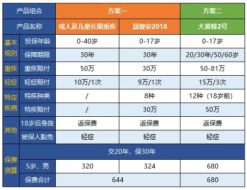 我們可以看到,方案1不需要逐年增長,直接到80萬重疾保額,保費(fèi)甚至比大黃蜂2號便宜幾十倍。因此,如果你想要一個高保額,它可能會更多通過不同產(chǎn)品的組合直接選擇。保險(xiǎn)配置的想法非常靈活,您可能希望嘗試自己匹配。