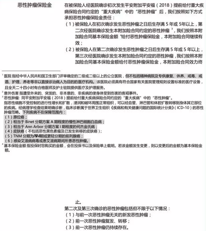 平安福2018創(chuàng)新推出了癌癥多重支付保證。如果我們不閱讀這些條款,我們會(huì)理所當(dāng)然地認(rèn)為這是一件特別好的事情。但是,保險(xiǎn)本質(zhì)上是一種合同。由于是合同,因此必須以條款和條件為準(zhǔn)。讓我們來看看平安福對(duì)多次癌癥支付的定義:
