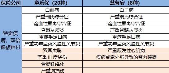 其中童樂保含有高危疾病,白血病,嚴(yán)重的手足口病,燒傷,腦損傷,而慧馨安8種,但基本上重病是重合的,整體差異并不大。