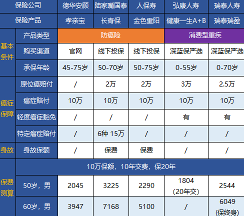 為了便于比較,增加了2個(gè)消費(fèi)者重大疾病保險(xiǎn):