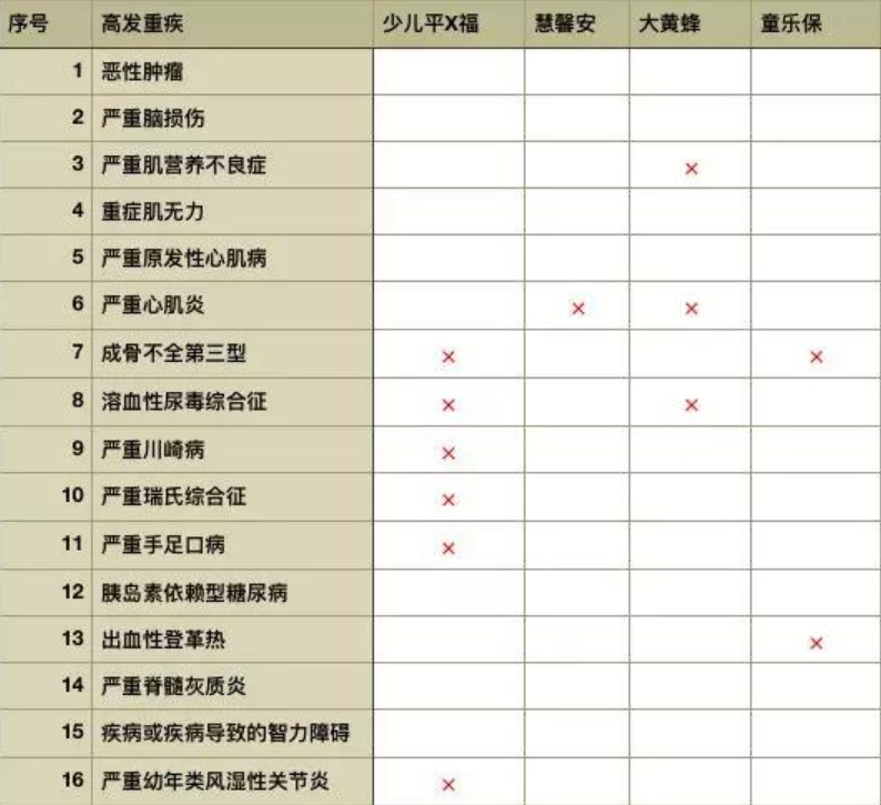 沒有比較就沒有壞處。兒童的平福福中兒童16中疾病發(fā)病率高,6種不包括在內(nèi):成骨不全第三型、溶血性尿毒癥、嚴(yán)重川崎病、嚴(yán)重瑞士綜合征、重癥手足口、嚴(yán)重幼年性類風(fēng)濕炎。