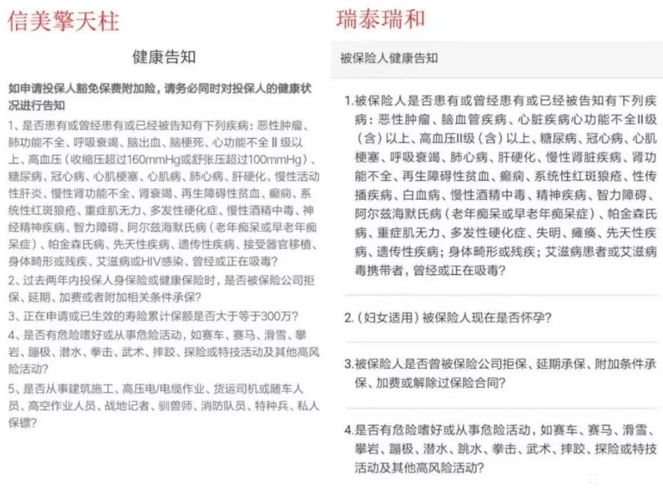 健康要求信美擎天柱2號(hào)仍然比瑞泰瑞和略微嚴(yán)格;