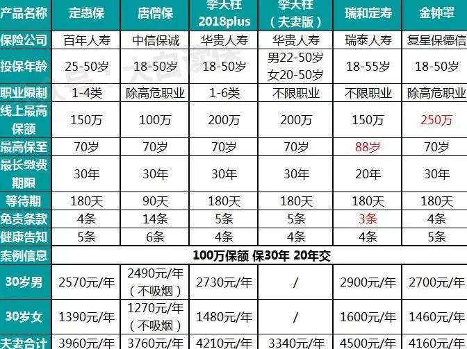 那保費到底能相差多少呢?多保魚選擇了6款市面上主流的定壽進(jìn)行對比: