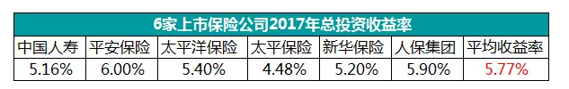 2017年,六家上市保險公司的財務報告顯示,最高投資回報率平安保險,為6%,最低的是太平保險,為4.48%。