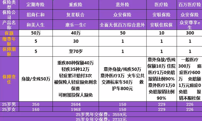 從前兩個(gè)方案可以看出,20多歲的年輕人每年花費(fèi)超過1000-2000保費(fèi)可以獲得非常好的保障。收入增加后,他們將再次配置相應(yīng)的產(chǎn)品。
