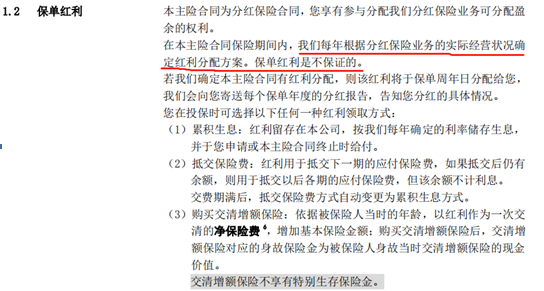 保險(xiǎn)公司的收益是根據(jù)經(jīng)營(yíng)狀況來(lái)決定的,各行各業(yè)不能保證自己一定盈利、盈利多少,保險(xiǎn)公司也不例外,保險(xiǎn)公司不能確定自己盈利多少,所以保險(xiǎn)公司設(shè)定一個(gè)保底利率,也就是最低收益,多數(shù)是2%左右,能夠達(dá)到3%以上的就是很不錯(cuò)的產(chǎn)品了。以某安公司產(chǎn)品為例: